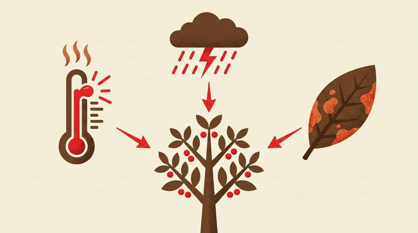 "Global warming of even 1°C can significantly affect coffee cherry development, leading to reduced cup quality" — Climate.ai, Risk Outlooks for Coffee (2025)