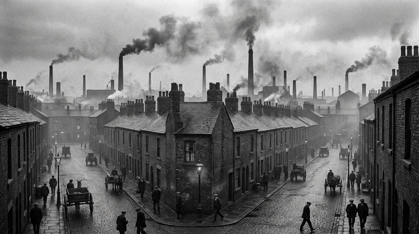 맨체스터의 인구는 1771년 약 22,000명에서 1831년 약 142,000명으로 폭증했다. 도시는 급속히 팽창했지만 인프라는 따라가지 못했다. 하수 시설이 없는 골목, 한 방에 열 명이 사는 숙소, 6세 아이들이 12시간 교대로 일하는 공장.