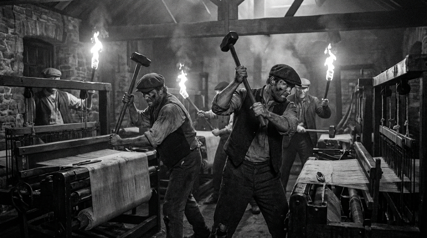 밤마다 복면을 쓴 남자들이 공장에 침입해 직조기를 망치로 부수고 사라졌다. 그들은 스스로를 전설 속 인물 네드 러드(Ned Ludd)의 추종자라 불렀다. 역사는 이들을 러다이트(Luddites)라 기록한다.